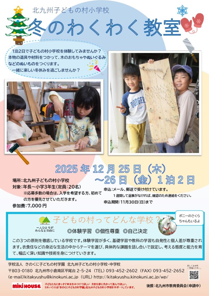 冬のわくわく教室のおしらせです。